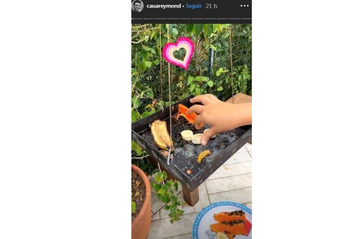 Cauã flagrou a menina colocando alguns pedaços de banana e mamão em um pote para que as aves da região possam se alimentar e depois seguir viagem. Mas não é só de mini veterinária que vive Sofia, a menina também arrasou dançando enquanto assistia um clássico das princesas da Disney: Aladdin.