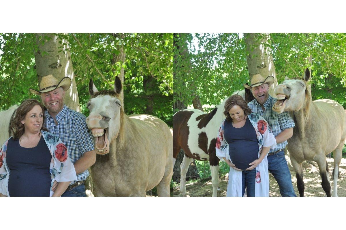 Um cavalo deu um show no ensaio de fotos de gestante de Amanda Eckstein e Phillip Werner, casal de Indiana. O divertido animal se chama Buckshot e adora ser o centro das atenções.