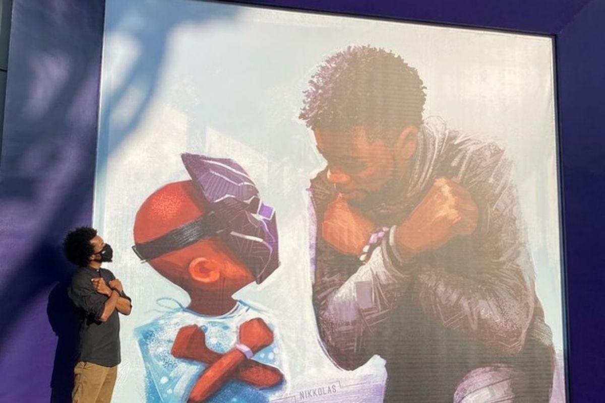 Nas redes sociais, Nikkolas postou algumas fotos com a obra, incluindo uma com o filho bebê no colo e se emocionou: “Esse é um especial. Meu tributo ‘Rei Chad’ está agora exposto em uma parede na Downtown Disney. Esse é o final de um ciclo pra mim: meus dois projetos finais na Disney Imagineer no último verão foram trabalhando no Hospital Infantil e no Avengers Campus. Para milhões de crianças, T’Challa foi uma lenda maior que a vida e não tinha ninguém que merecia mais representar esse papel do que Chadwick Boseman. Eu sou muito grato em poder honrar a vida e propósito de Chadwick dessa forma”.