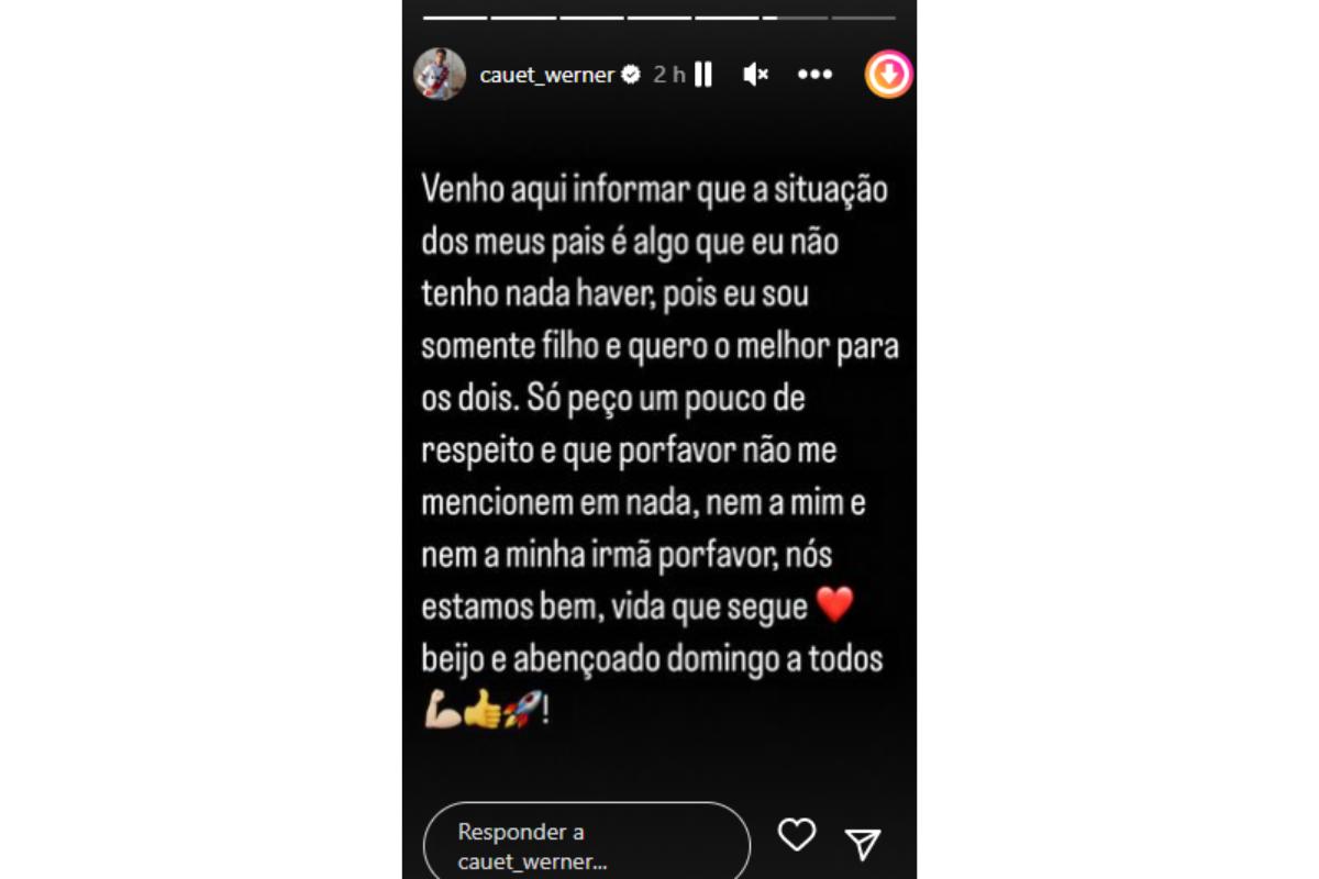 Ele completou: “Só peço um pouco de respeito e que por favor não me mencionem em nada, nem a mim, nem a minha irmã por favor. Nós estamos bem, vida que segue. Beijo e abençoado domingo a todos”.