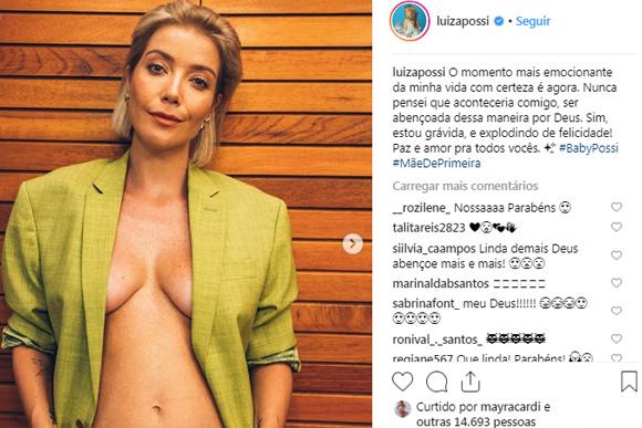 Com 3 meses e meio de gestação, Luiza postou uma foto em seu Instagram falando sobre a gravidez.