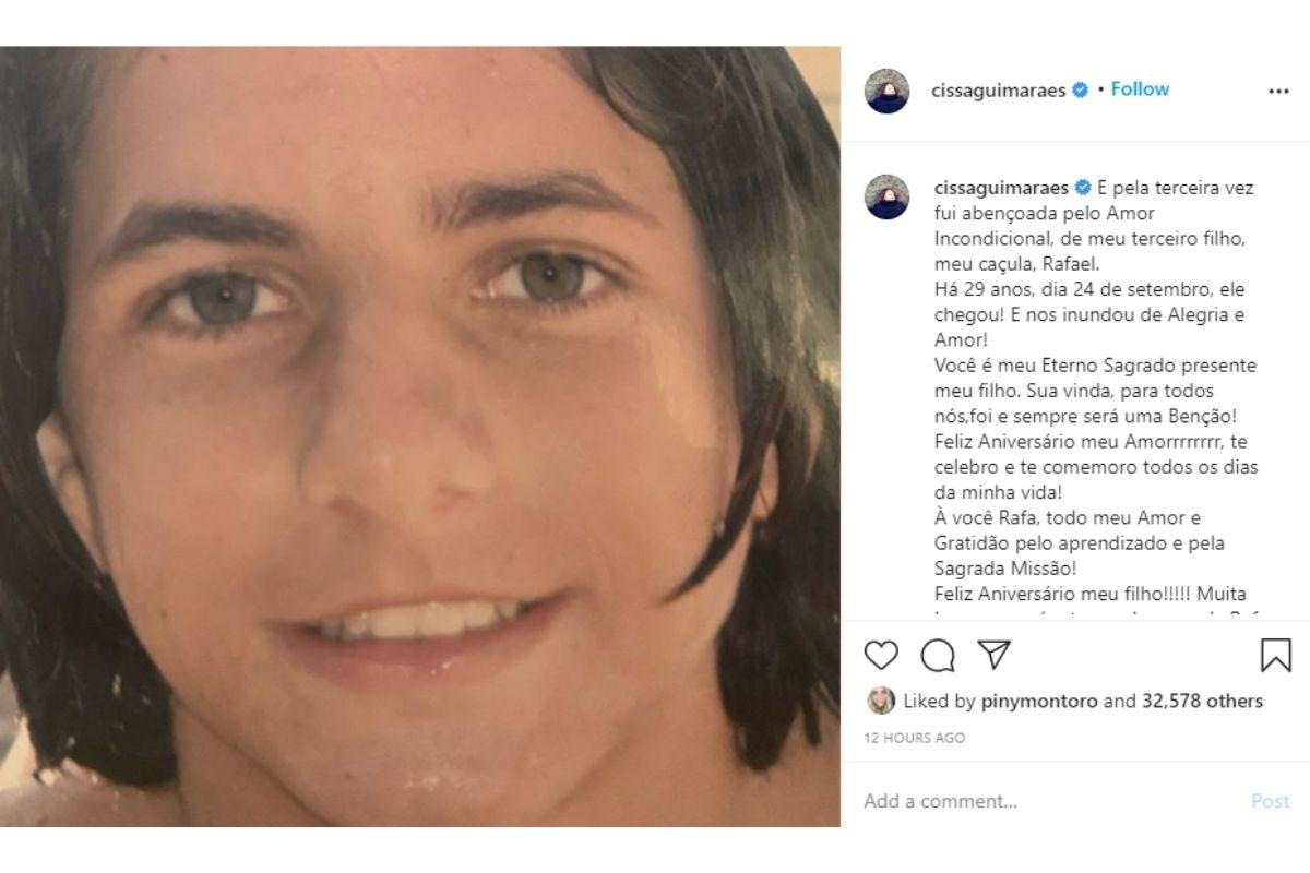 Para finalizar o texto de homenagem, Cissa abre o coração e conta que lembra do caçula todos os dias. “Feliz aniversário meu amor, te celebro e te comemoro todos os dias da minha vida! À você Rafa, todo meu amor e gratidão pelo aprendizado e pela sagrada missão!”.