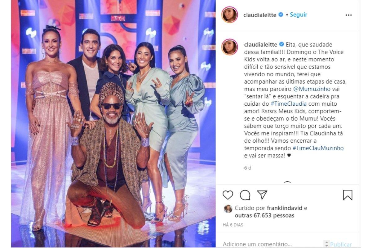 Entretanto, Claudia Leitte deixou claro que é apenas temporário. “Mumu é um cara sensacional, uma vibe maravilhosa. Ele vai sentar lá com o time, dar uma esquentadinha, mas já já eu volto”, ressaltou.