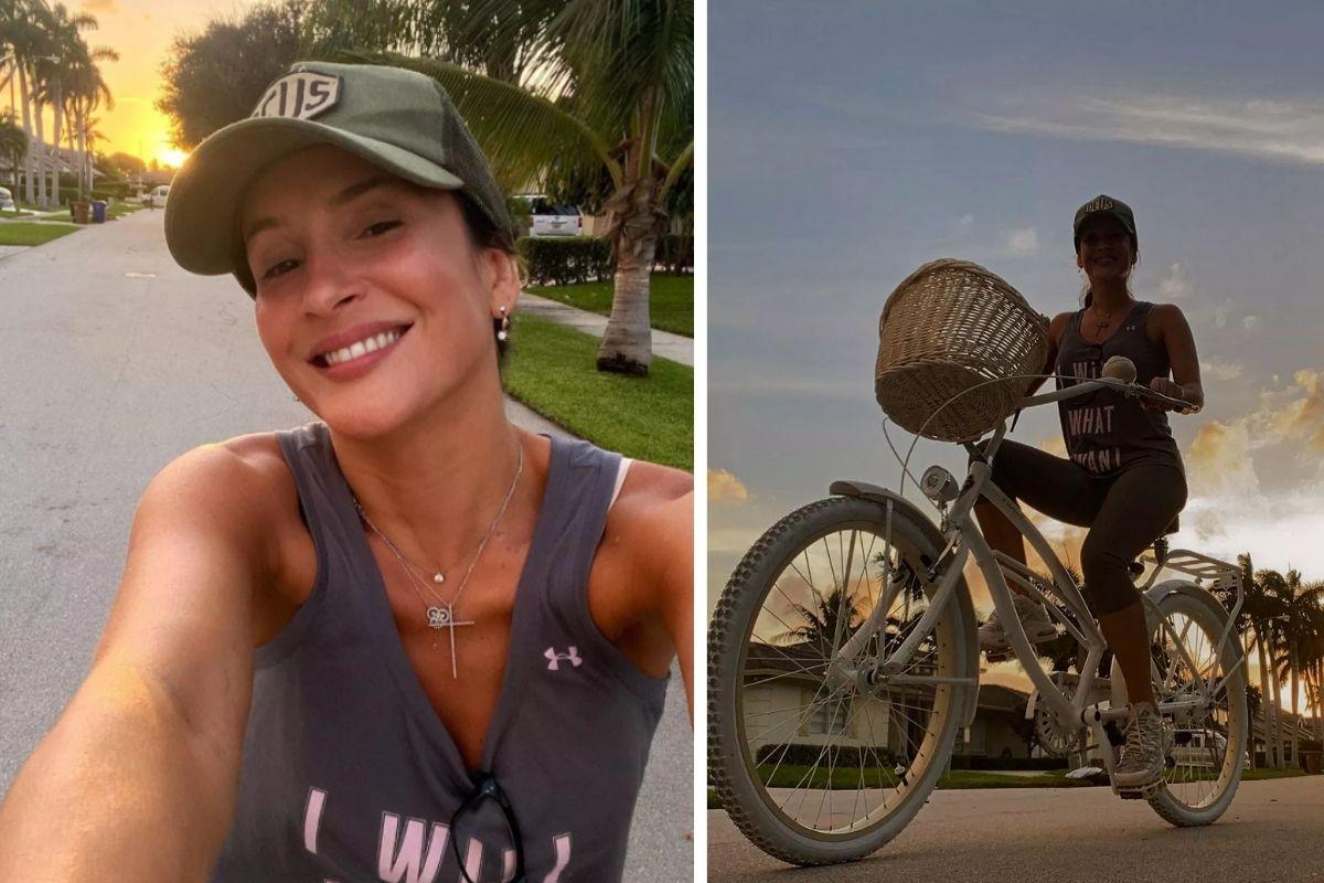 Na foto, a cantora sorridente com a bebê dentro da cestinha da bicicleta, com o pôr do sol no fundo. ““Cestou” A gente anda de bicicleta e fica ligada curtindo a playlist aí do lado!”, escreveu Claudia na legenda da publicação. A família mora nos Estados Unidos atualmente, mas a artista costuma vir para o Brasil frequentemente por causa da carreira.