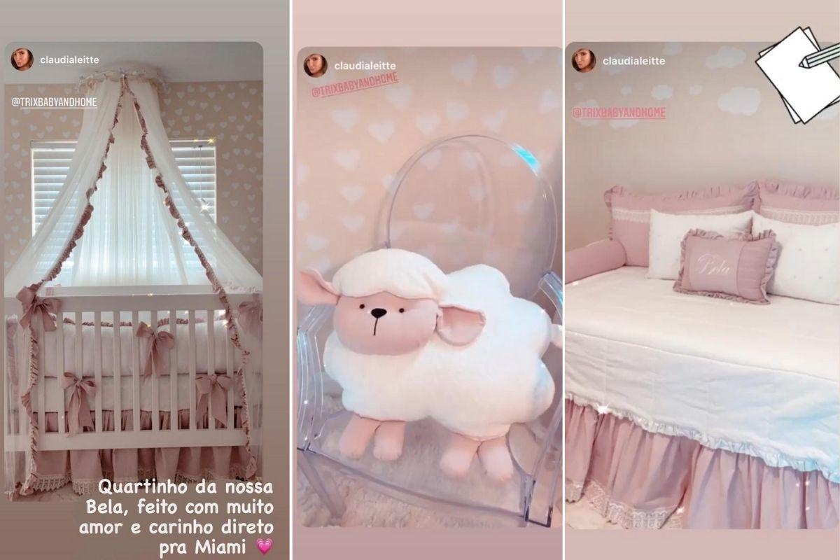 Ao mostrar o quarto da filha, Claudia Leitte disse que o quarto da bebê foi feito por uma empresa de enxoval baiana que enviou os itens para os Estados Unidos. “Quartinho da nossa Bela, feito com muito amor e carinho, direto pra Miami”, legendou a empresa ao compartilhar os Stories da cantora.