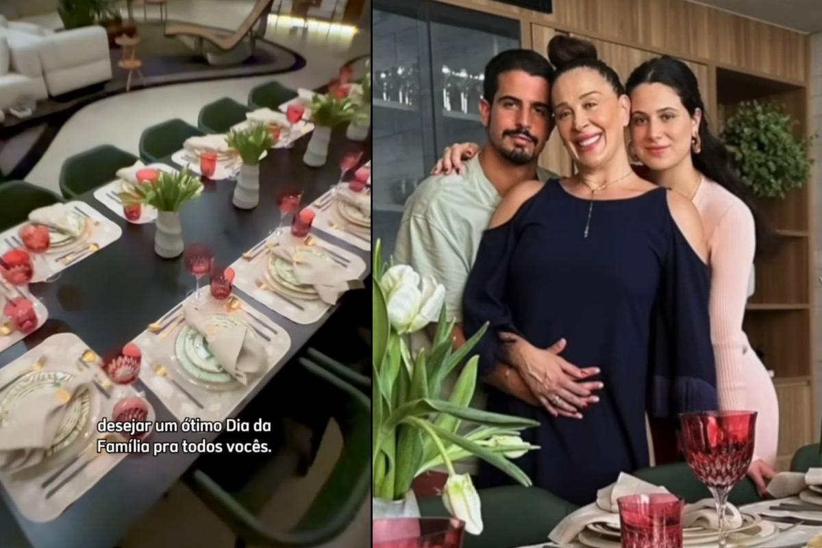 Por meio de um vídeo publicado em suas redes sociais, Claudia Raia mostrou momentos de descontração ao lado de Enzo Celulari, de 25 anos, Sophia Raia, de 20, e seu filho caçula, Luca, de apenas três meses. Além disso, a renomada artista exibiu a mesa impecavelmente decorada com a ajuda de uma especialista, composta por um requintado jogo de pratos e taças.