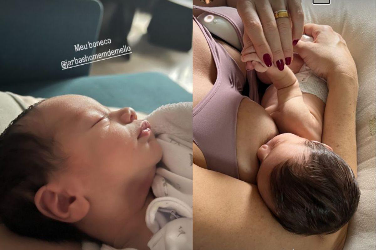 Por meio de fotos compartilhadas no Instagram, Claudia dividiu com os seguidores um momento amamentando Luca e também detalhes do filho: “Meu boneco”, escreveu ela em uma das fotos