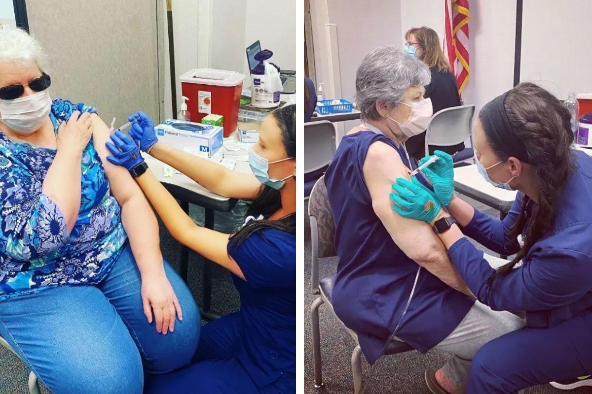 Enfermeira se emociona ao vacinar ambas as avós  (Foto: Reprodução / People)