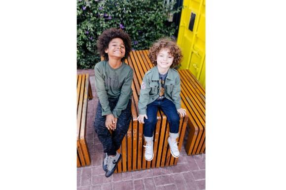 Para os meninos, tanto a Gijo Kids (1-3 anos) quanto a Gijo (4-8 anos) se basearam no Urban Cool. A ideia é mostrar atitude com as estampas e toque esportivo das roupas, apostando nas peças de sarja e capuz.