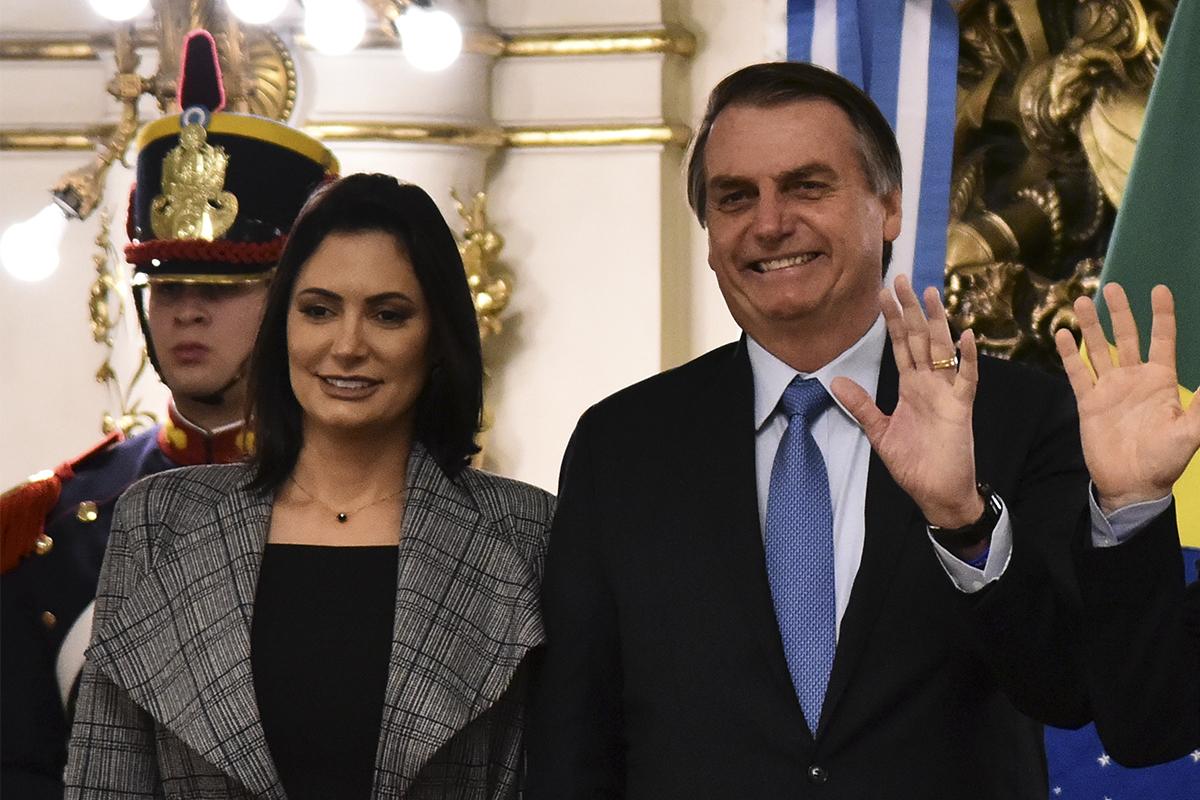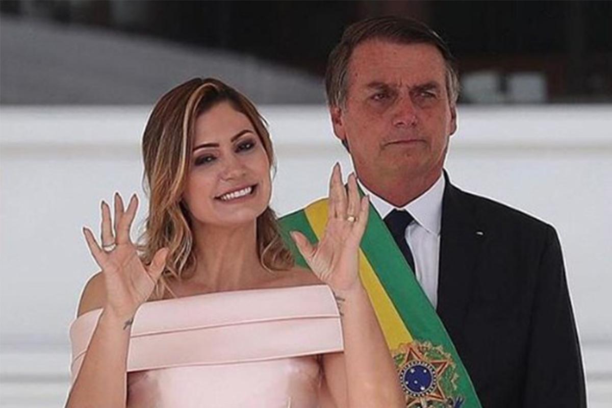 Michelle Bolsonaro e o presidente no lançamento do novo projeto Pátria Voluntária em Brasília (Foto: reprodução / Instagram / @michellebolsonaro)