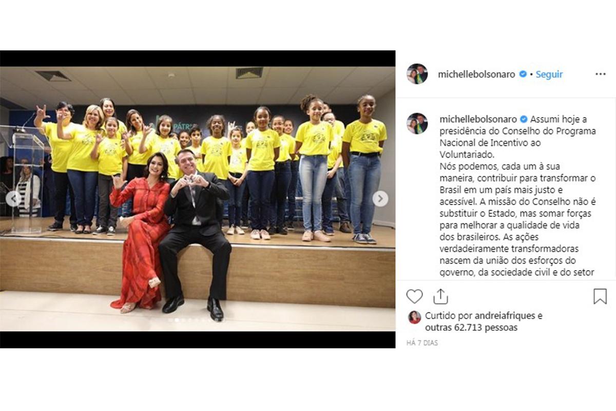 Michelle fez questão de compartilhar a novidade no Instagram. “Assumi hoje a presidência do Conselho do Programa Nacional de Incentivo ao Voluntariado. Nós podemos, cada um à sua maneira, contribuir para transformar o Brasil em um país mais justo e acessível”, escreveu a primeira-dama. Ela também deixou claro a missão do nosso projeto: somar forças para melhorar a qualidade de vida dos brasileiros.