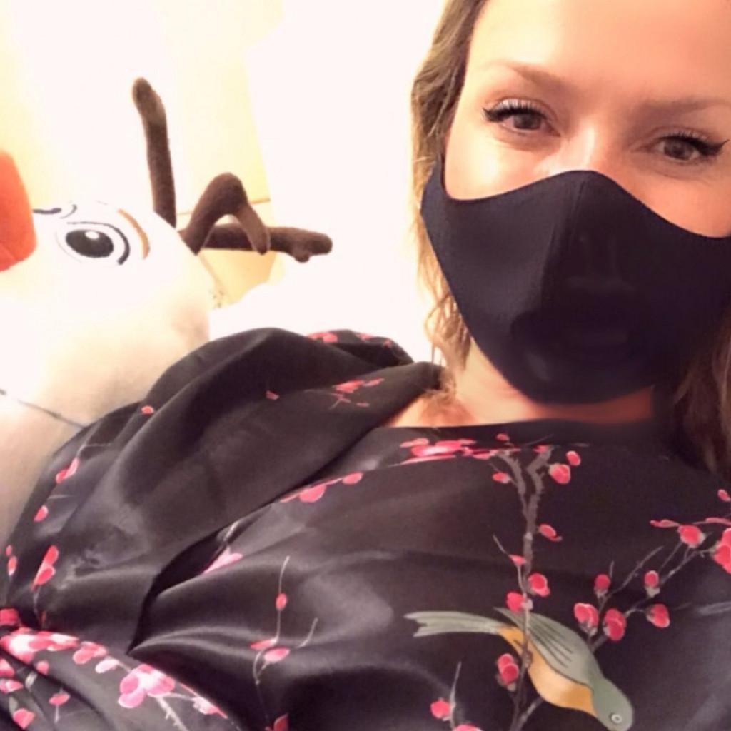 Eliana, que está com coronavírus e isolada dentro de casa, ganhou um presente da filha, Manuela, de 2 anos, para que não ficasse muito sozinha. A apresentadora compartilhou foto de máscara ao lado de uma pelúcia do Olaf e contou tudo para os seus seguidores na legenda.