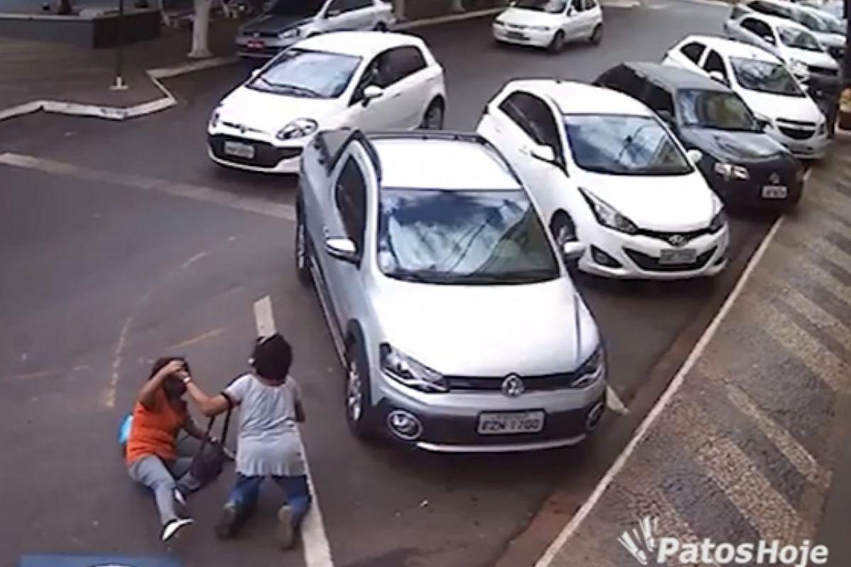 Em um vídeo, que viralizou nas redes sociais, o momento exato do acontecimento é registrado pelas câmeras de segurança de um estabelecimento. Apesar do susto, uma policial militar as ajudou a levantar e elas passam bem.