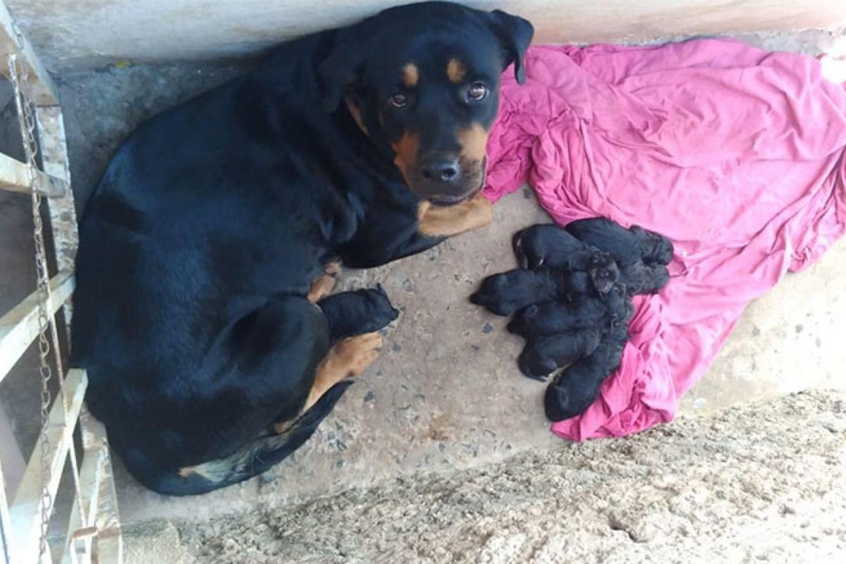 Após o nascimento dos nove filhotes, infelizmente um deles não resistiu. Glauber disse ainda que a pet está super protetora e não deixa nem que o pai se aproxime! “Achei a situação curiosa porque a gente nunca espera que vai dar um casal entre uma rottweiler e um poodle até porque imaginávamos que ele sequer alcançava”.