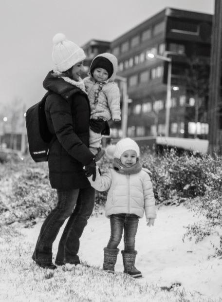 Partimos juntos a pé ou de bicicleta. A escola fica a algumas quadras de casa e a creche, a cerca de 5 minutos.