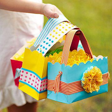 Faça uma cesta decorada para as crianças guardarem as recompensas da caça aos ovos.