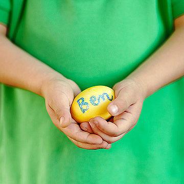 Na manhã da Páscoa, esconda os ovos personalizados com os nomes dos seus filhos para que eles encontrem.