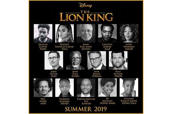 Donald Glover, personagem do vídeo clip “This is America”, será Simba. A cantora Beyoncé interpretará Nala. James Earl Jones será Mufasa e Chiwetel Ejiofor será o vilão, Scar. Billy Eichner e Seth Rogen farão a melhor dupla do cinema, Timão e Pumba!