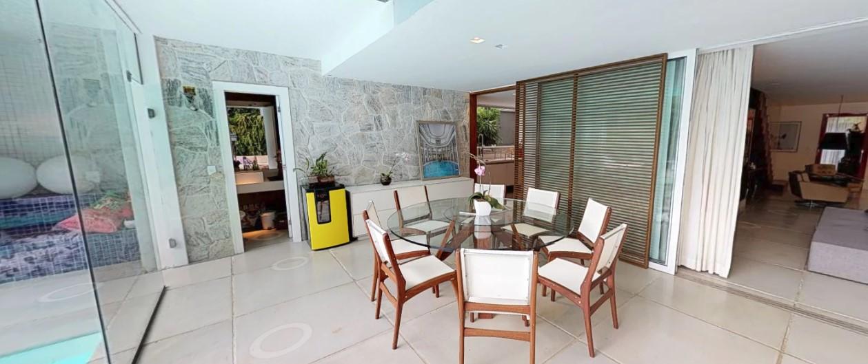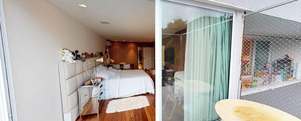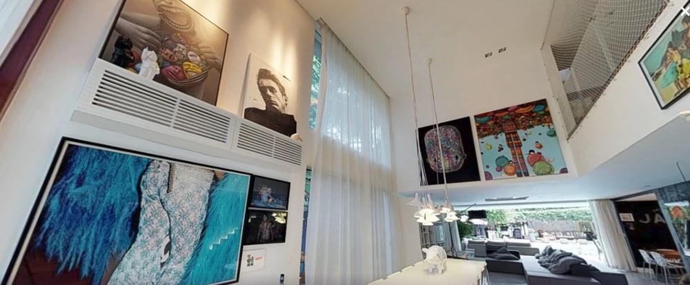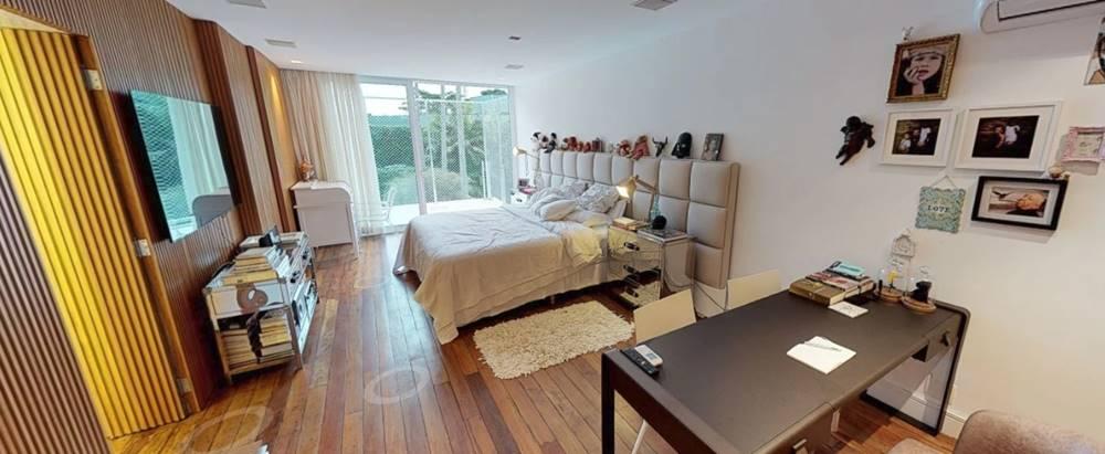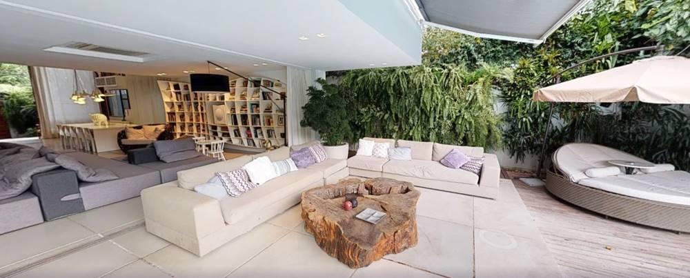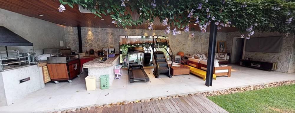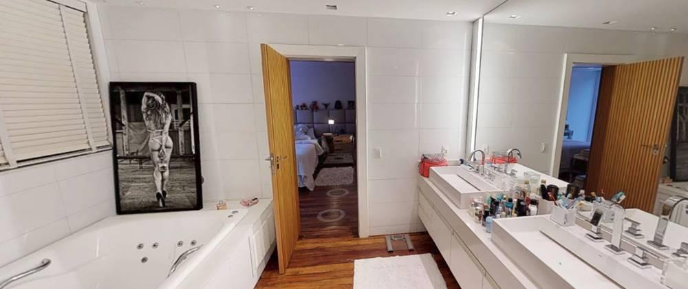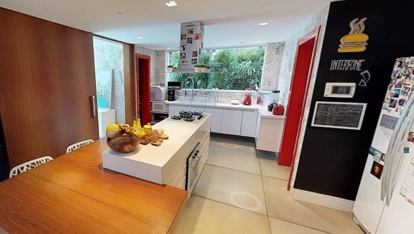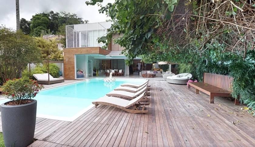 O casal tem duas casas, uma em São Paulo e outra no Rio de Janeiro. A residência de 501 m² tem dois andares e área externa com deck, piscina, churrasqueira, hall de entrada e quatro vagas para carros na garagem. No interior, são três suítes e seis banheiros.