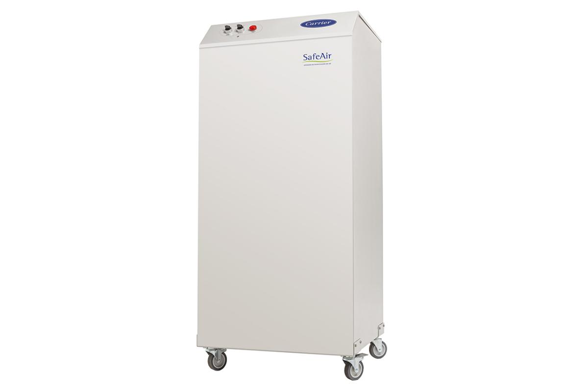 Pensando nisso, a Carrier lança o mais novo sistema de purificação de ar portátil, o SafeAir. O modelo remove do ar filtrado mais de 99,97% das partículas capazes de transportar patógenos como o covid-19, utilizando filtro HEPA. O modelo é portátil e facilmente instalado em diferentes locais. O SafeAir também traz tecnologias como converter, por exemplo, leitos de hospitais em leitos de isolamento infeccioso aerotransportado de pressão negativa (AIIR), já que captura partículas de tamanho a partir de 0,3 microns, eliminando do ar vírus e bactérias.