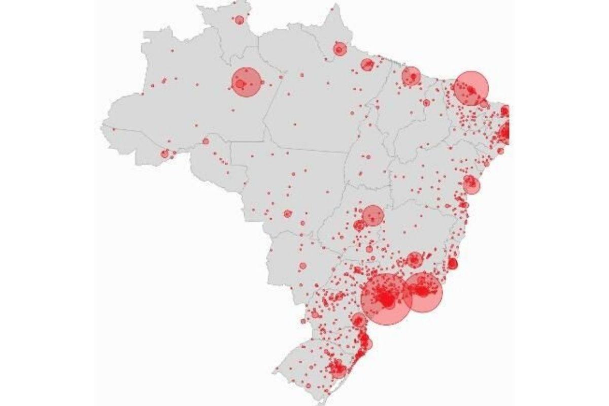 Veja abaixo o mapa que mostra a contaminação por toda extensão brasileira: