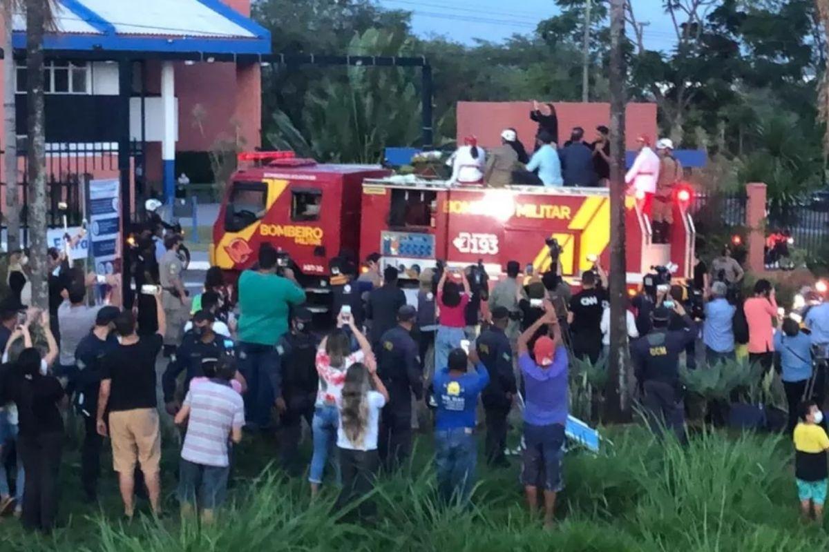 Durante o trajeto, ainda foi tocada a música “Ninguém vai sofrer sozinho, todo mundo vai sofrer” – uma das mais famosas de Marília Mendonça.
