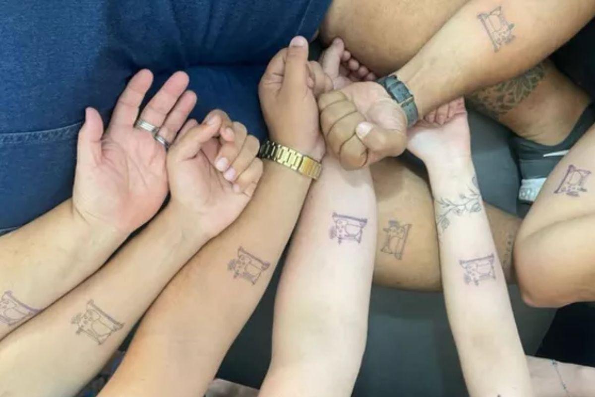 “Para ela foi um gesto muito grandioso, não sendo apenas um gesto. A gente sempre cuida dela, visita toda semana. Todo mundo ficou muito emocionado, eu também fiquei. A máquina de costura e o pilão são duas figuras que marcaram muito nossa infância. Nossa avó ficou muito emocionada, ela só chorava na hora. Os dois netinhos também quiseram fazer a ‘tatuagem’, então fiz um desenho de canetinha para que eles não ficassem de fora”, finalizou Giovana.