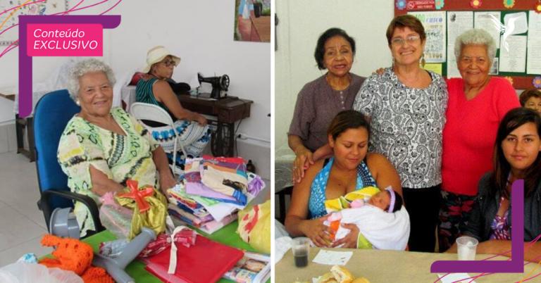 Há mais de 50 anos, Dona Nair sai de casa com seu andador todas as terças e quintas-feiras para fazer uma das atividades que mais gosta: costurar enxovais para gestantes com dificuldades financeiras. Junto a ela, tem mais um grupo de amigas.