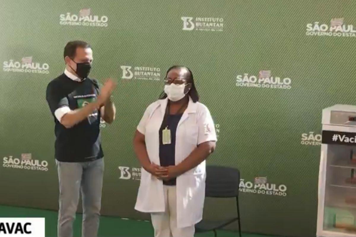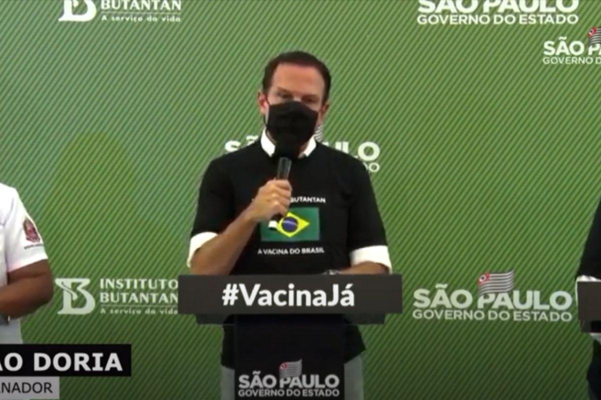 A entrevista aconteceu depois que a enfermeira Mônica Calazans, de 54 anos, recebeu ao vivo a primeira dose do imunizante. Durante a declaração, João Doria também fez uma homenagem aos trabalhadores da linha de frente da pandemia.
