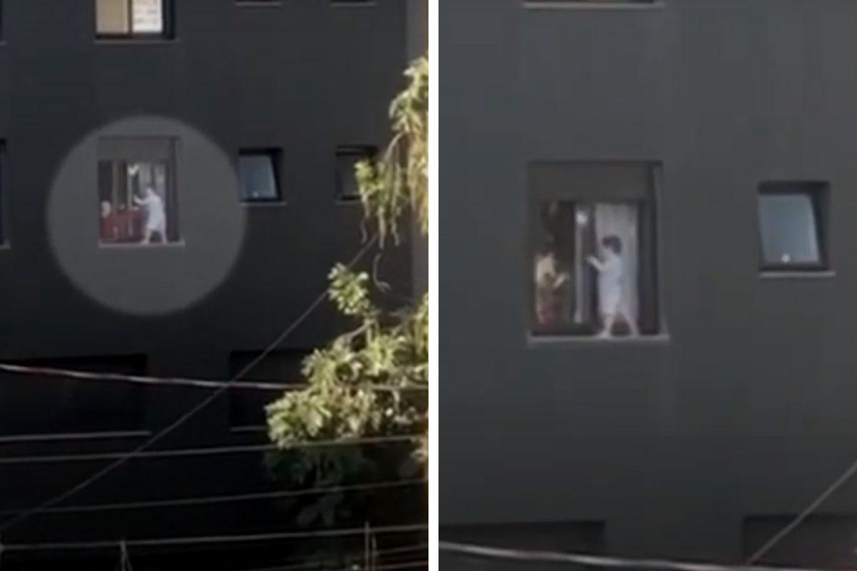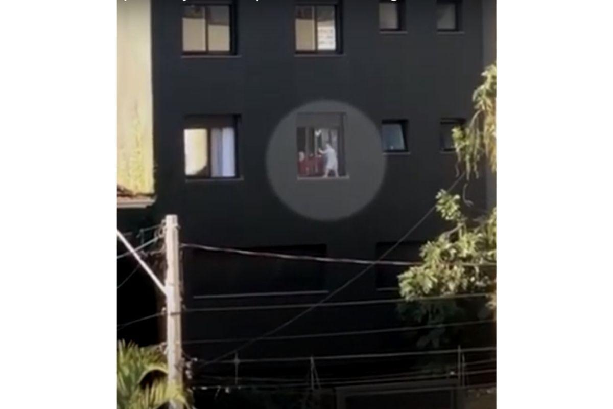 Uma criança foi filmada brincando no parapeito da janela de um prédio, em Porto Alegre, no Rio Grande do Sul. Na imagem, é possível ver que não existe apoio ou rede de proteção na estrutura do apartamento.