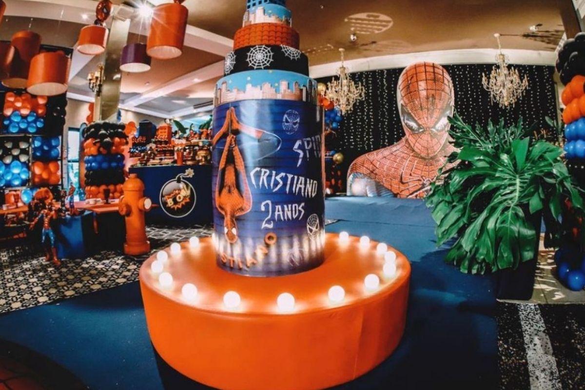 O tema da festa do filho caçula do casal foi do Homem-Aranha, que é um dos personagens favoritos do filho do sertanejo. Toda a decoração foi feita por Daniela Raduan, que trouxe o universo do super-herói para a comemoração. Com direito a bolo decorado, bexigas pelo salão, banner com o rosto do herói e até a presença de um Homem-Aranha de verdade, que encantou todos que estavam na festa.