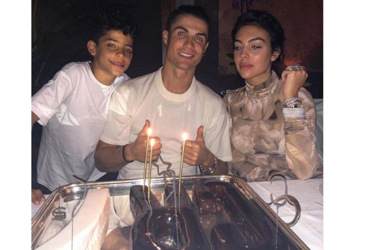No instagram, Cristiano publicou uma foto ao lado do filho mais velho e de Georgina, em que estavam ao lado de um bolo no formato das iniciais CR7. ” É hora de comemorar meu aniversário. Obrigada pela incrível surpresa, meu amor”, escreveu ele na legenda.