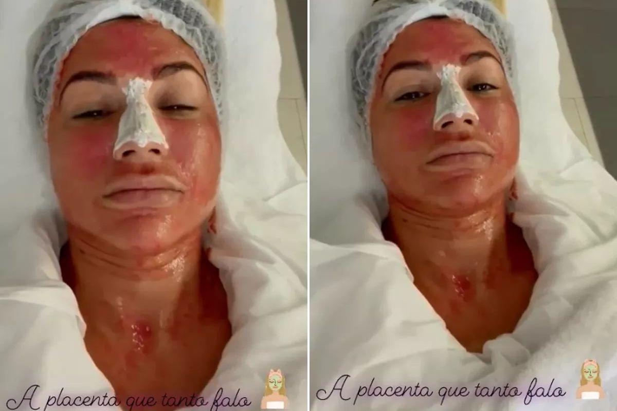 Dani Souza apareceu com o rosto coberto com a máscara natural e disse quais os benefícios do tratamento. Ela ainda ressaltou que os resultados não são imediatos. “Não sei se alguém já fez algum tipo assim de placenta. Hoje tomei algumas injeções. Mas vou contando para vocês os benefícios que for sentindo em relação ao tratamento, os benefícios mais para frente, porque acho que não vou sentir o resultado agora”, começou ela.