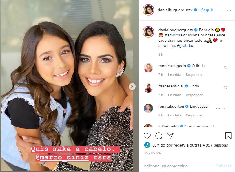 Os seguidores deixaram muitos comentários elogiando mãe e filha. “Dani, como ela está uma moça e tão linda!”, disse uma seguidora. “Que cabelão lindo!”, elogiou outra fã. “Ela é a cara do pai!”, comentou outro seguidor.