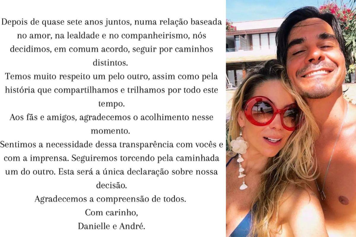 Segundo Danielle, a separação foi feita em comum acordo e de forma amigável. “Depois de quase sete anos juntos, numa relação baseada no amor, na lealdade e no companheirismo, nós decidimos, em comum acordo, seguir por caminhos distintos. Temos muito respeito um pelo outro, assim como pela história que compartilhamos e trilhamos por todo este tempo”, disse a atriz em seu Instagram.