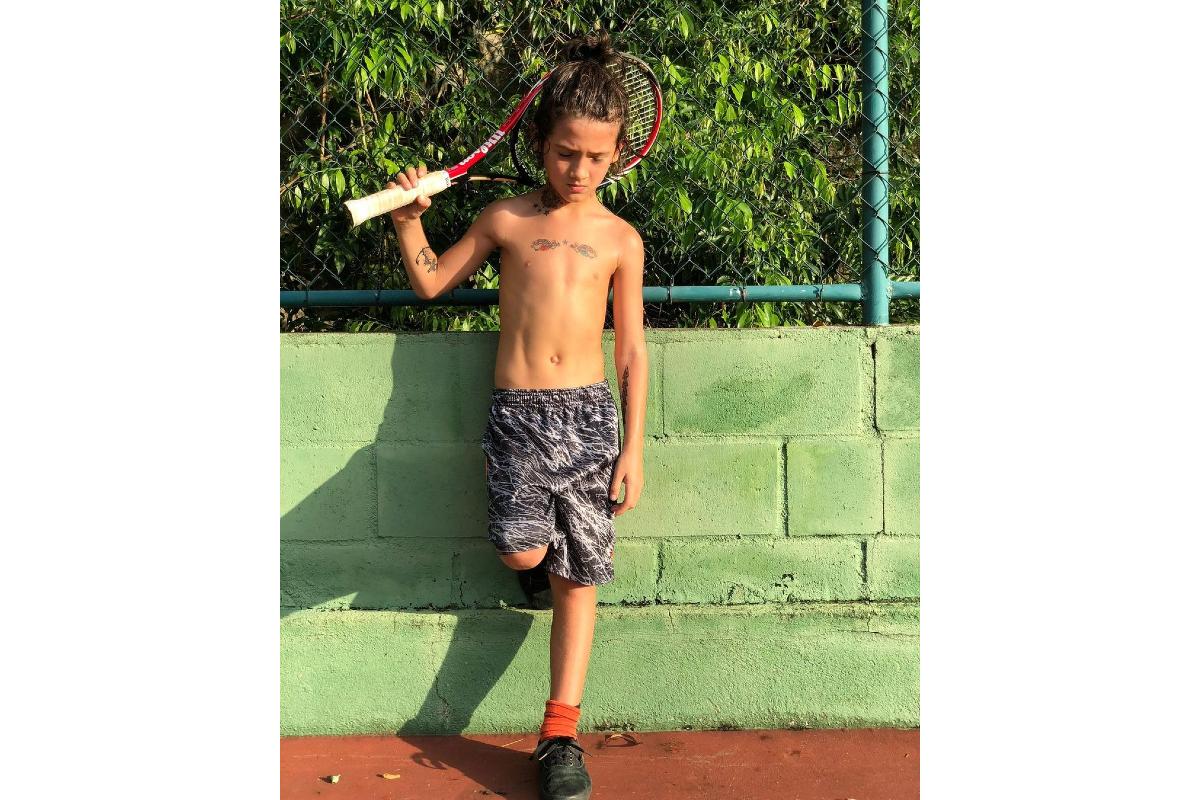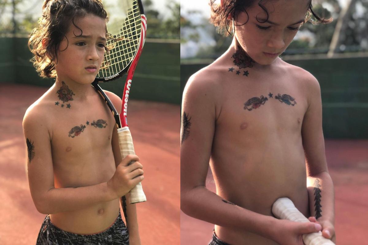 A atriz Danni Suzuki recebeu muitas críticas ao publicar uma sequência de fotos lindas do filho, Kauai, de 10 anos. Neste domingo, 29 de agosto, ela mostrou o menino jogando tênis com algumas tatuagens espalhadas pelo corpo.