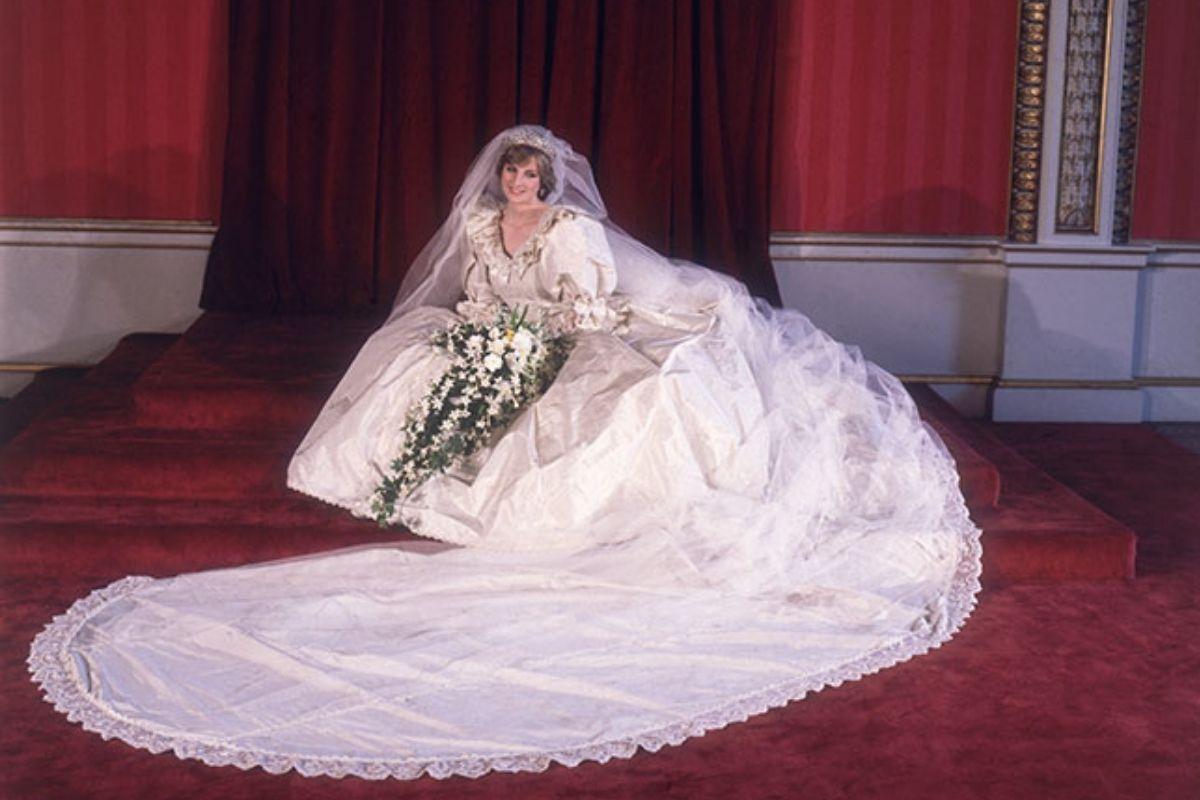 Um dos mais famosos da história, o vestido de noiva da princesa Diana entrou para a história com o seu véu de 153 metros.