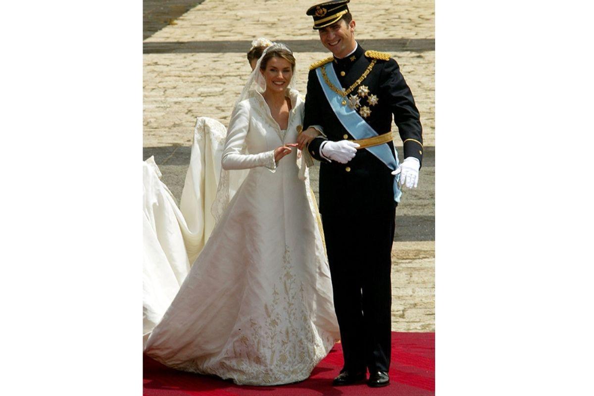 O vestido de noiva mais caro da família real custou £ 6 milhões (R$ 45 milhões) e foi usado pela rainha Letizia da Espanha, em 2004. O preço exorbitante foi atribuído ao tecido: fios de ouro na seda pura.