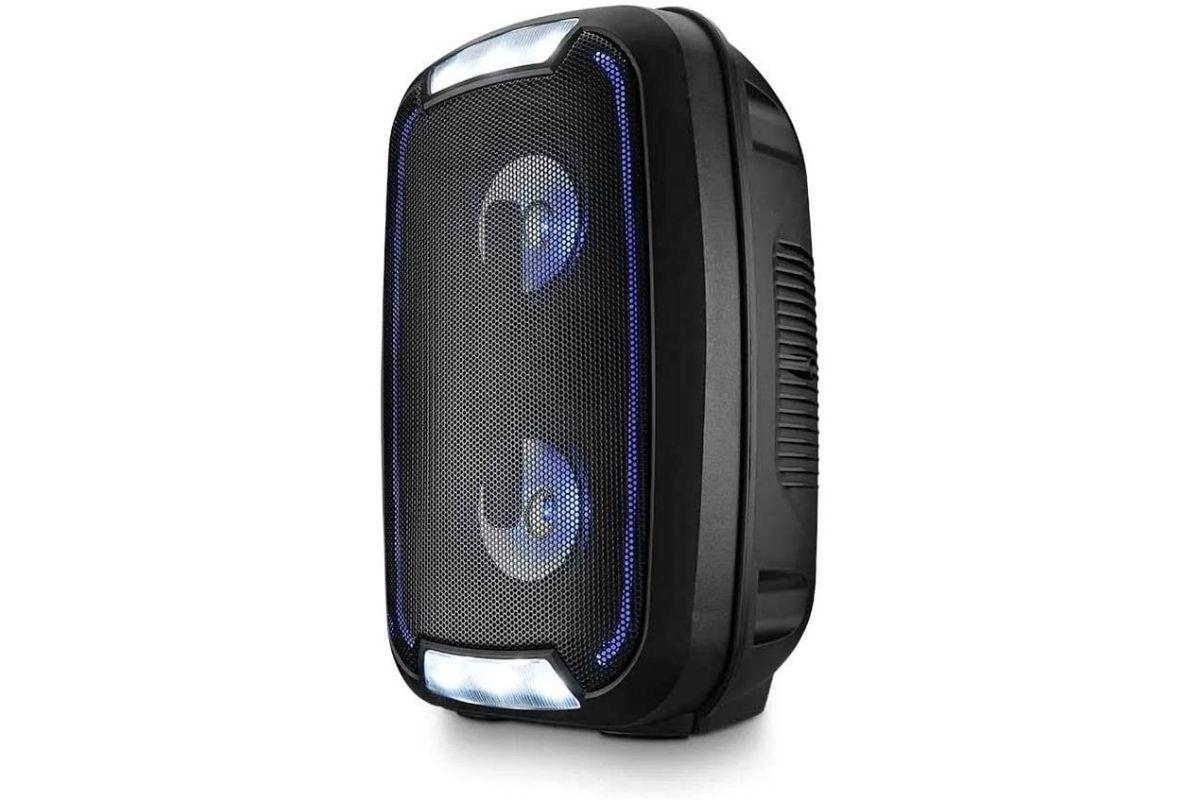 Você pode ouvir suas músicas sincronizadas direto do seu Smartphone com essa caixinha, sem precisar do uso de cabos. Ela também permite que você ouça sua estação favorita da rádio, reproduza músicas direto do seu pendrive ou cartão de memória. Além disso, também tem luzes de led e flash em seu design.