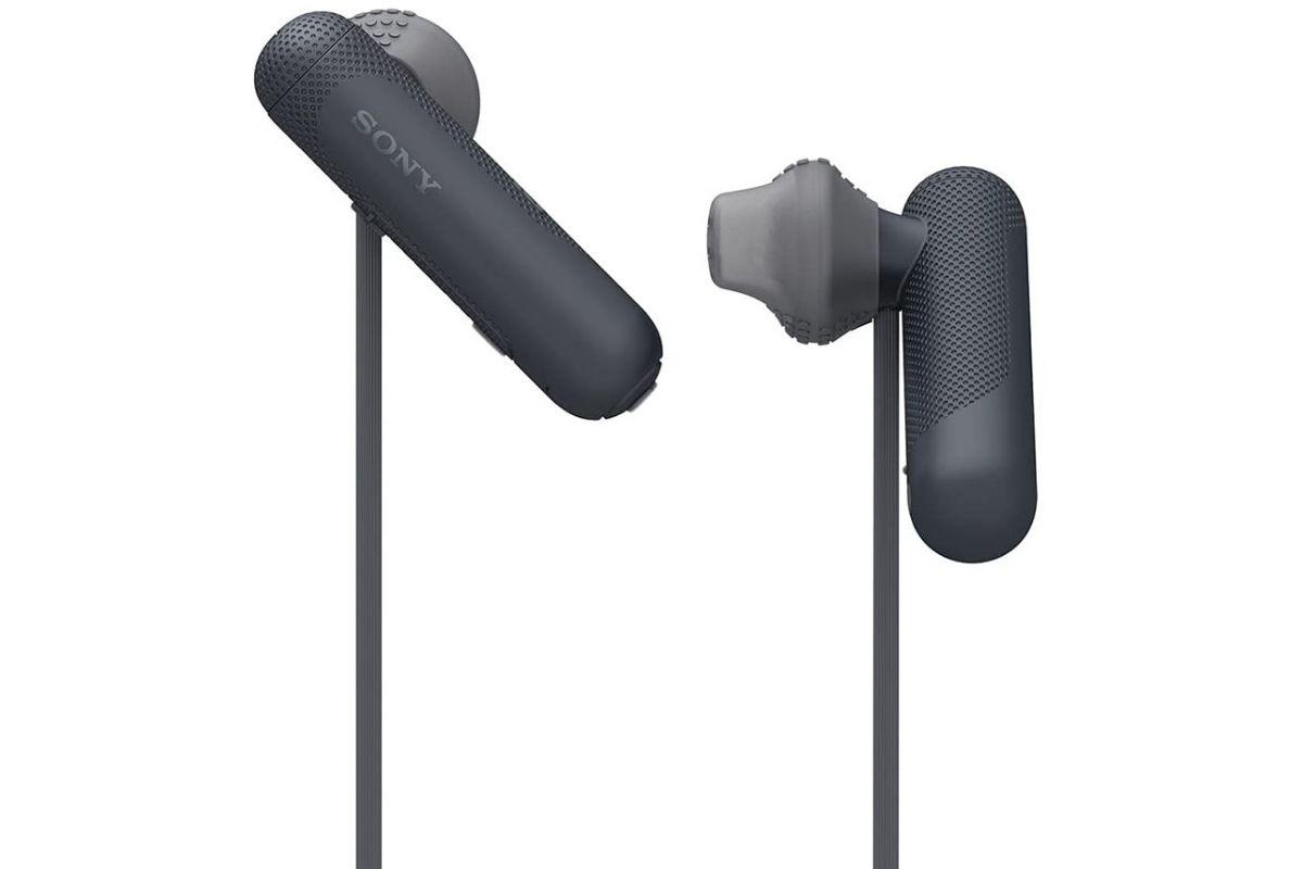 Esses fones da Sony possuem um driver de tipo aberto de 13,5 mm, o que permite um som ambiente natural. Também conta com borrachas ergonômicas para mantê-los no lugar, e são conectados por um fio que pode ser passado por trás do pescoço.