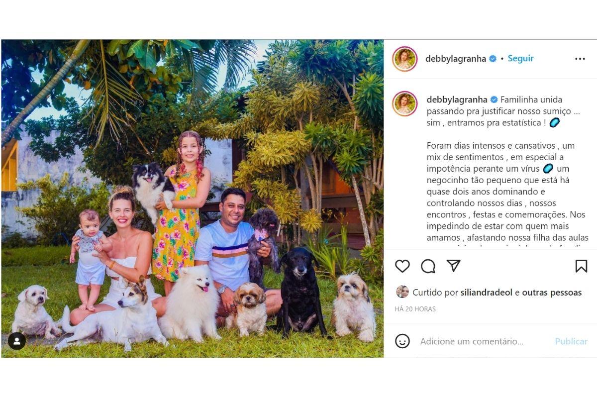 Na última segunda-feira, 24 de janeiro, a atriz Debby Lagranha usou as redes sociais para compartilhar uma notícia sobre a família com seus seguidores: ela, o marido e os filhos testaram positivo para a covid-19. Pelo Instagram, ela publicou uma foto e contou o que houve na legenda do post.