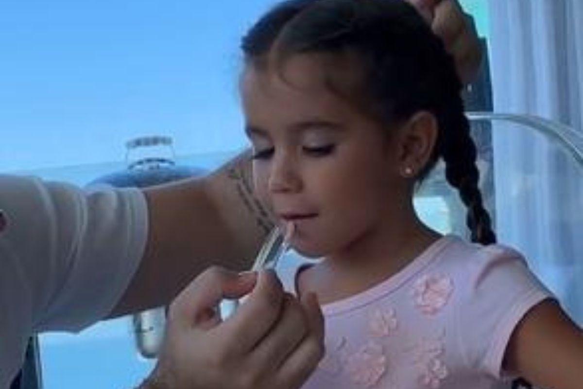 Depois, Deborah convida a filha para almoçar. “Jasmine, a gente vai almoçar? Você está pronta? Está linda? Está se amando?”, perguntou enquanto a filha respondia “sim” para todas as perguntas.