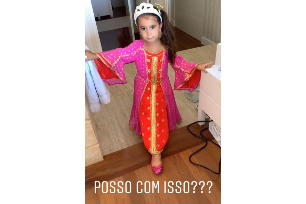 “Posso com isso?”, disse Deborah. “Eu estava pronta pra sair e eis que entra no meu quarto… Quem é você?”, perguntou a mãe que prontamente foi respondida pela filha, dizendo ser a princesa Jasmine. “Que roupa linda, Jasmine! Filha, eu te amo!”, declarou.