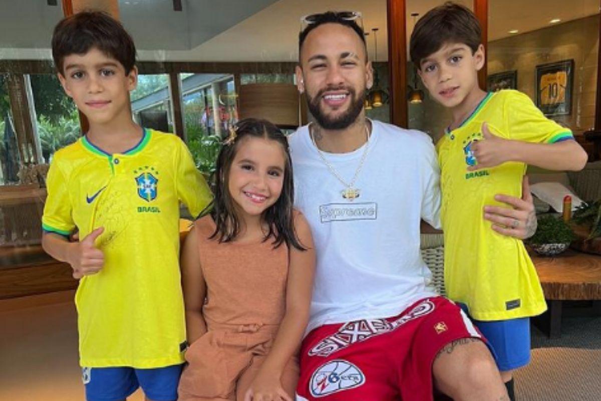 Neymar com Maria Flor, Jorge e Francisco (Foto: Reprodução/Instagram@babifsecco)