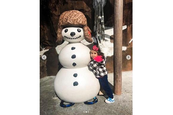 Nos cliques publicados pela atriz, a filha Maria Flor é a estrela principal e aparece num carrossel ao lado da mãe e posando junto a um boneco de neve.