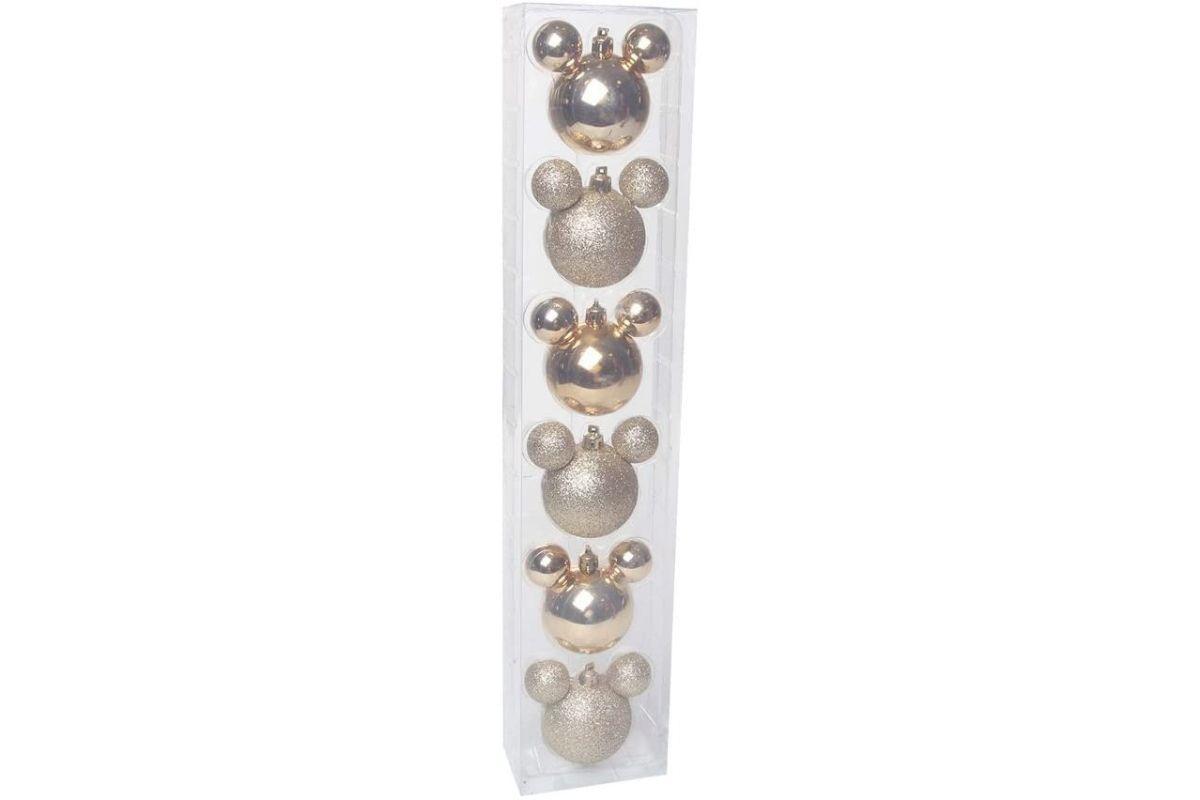Quem é apaixonado pela Disney vai amar esses modelos – a gente já se encantou. Conta com seis bolas douradas, de seis centímetros, mas no formato do camundongo mais famoso do mundo, o Mickey.