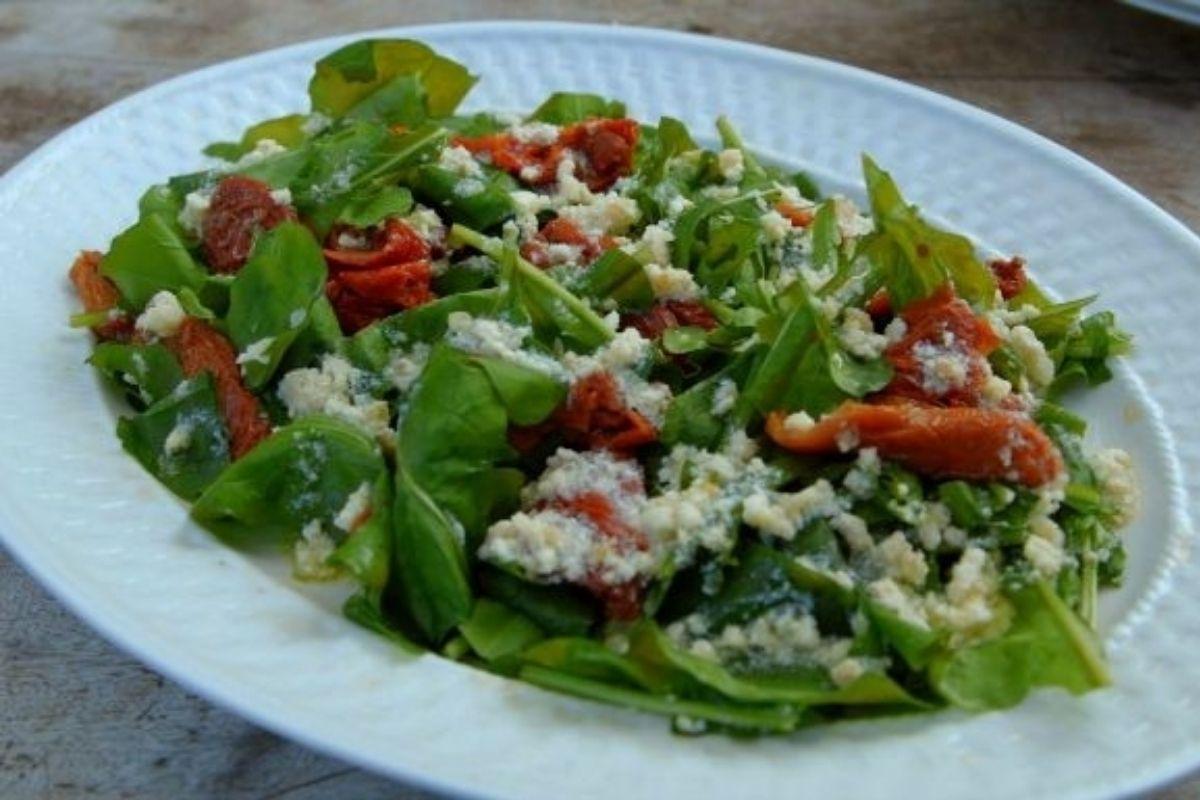 Salada de ricota e tomate seco com molho de mostarda e mel