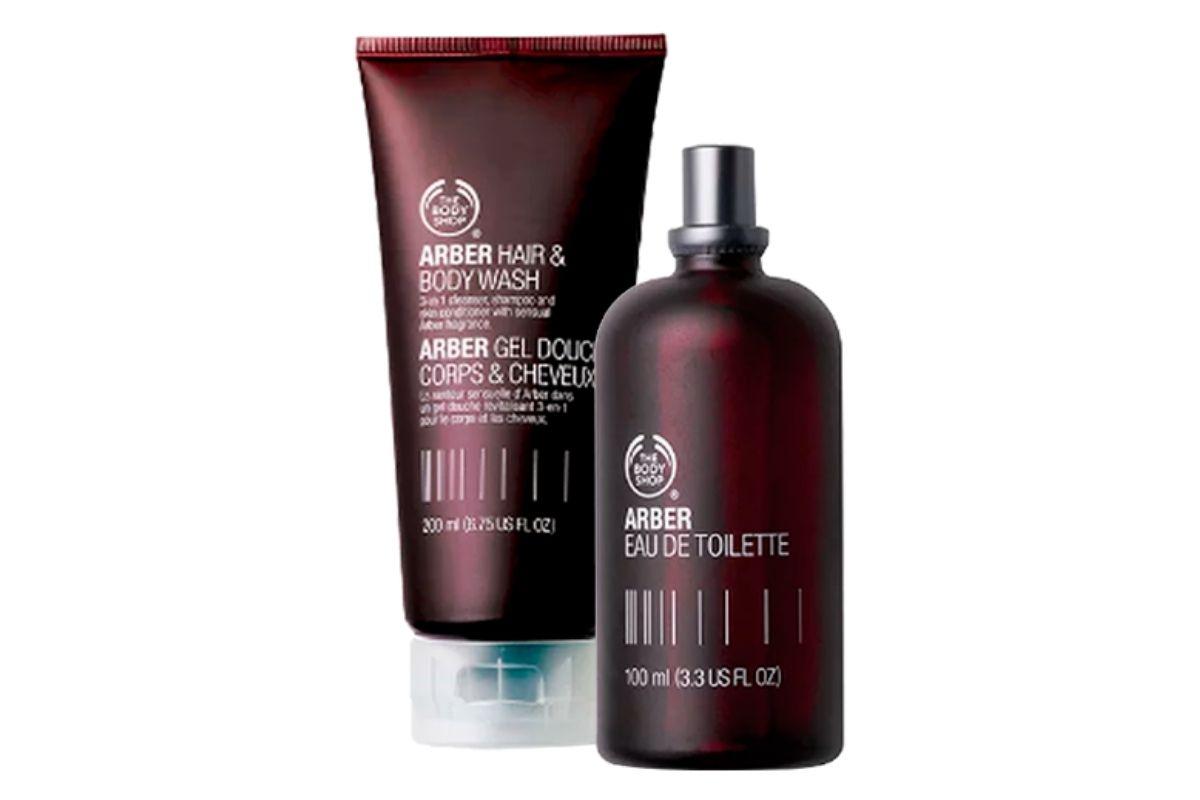 O kit com perfume e gel de banho para corpo e cabelo da The Body Shop contém uma fragrância amadeirada aromática com um toque cítrico de laranja.