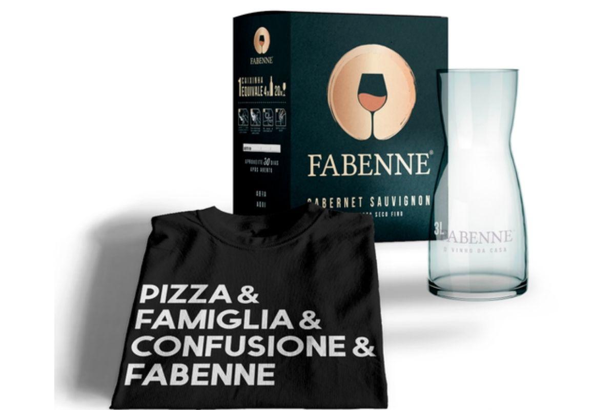 O kit da Fabenne é perfeito para presentear aqueles pais que amam um bom vinho! Além da jarra e da bebida, o kit também vem com uma camiseta escrita “Pizza&Família&Confusão&Fabenne” que é a cara das famílias italianas!