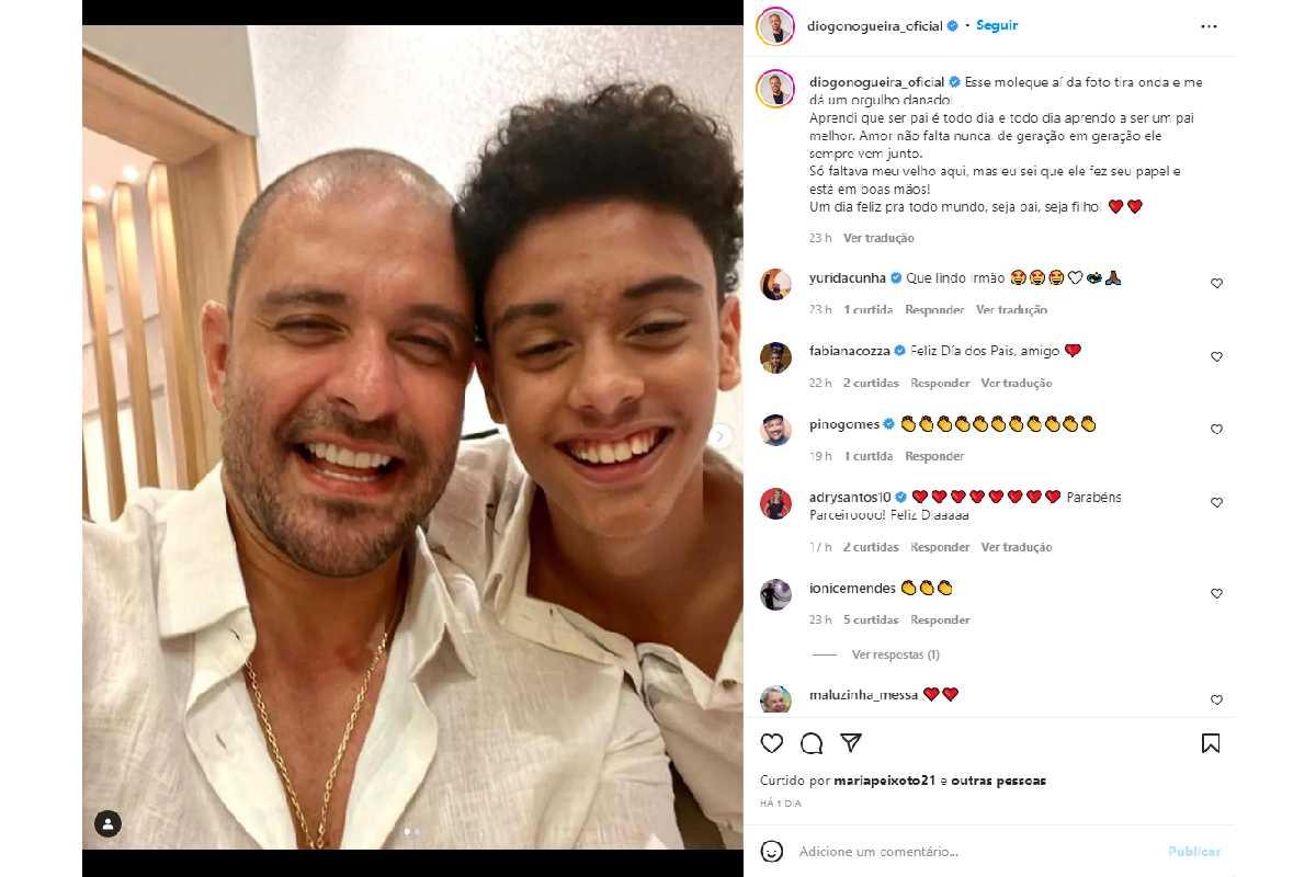 Nos comentários, amigos e seguidores parabenizaram Diogo Nogueira pela data: “Feliz dia, que o amor, a admiração e o carinho de vocês sejam constantes… Ser presente na vida um do outro é tudo de lindo”, “Que lindo. É sobre isso” e “Parabéns, feliz Dia dos Pais!”.